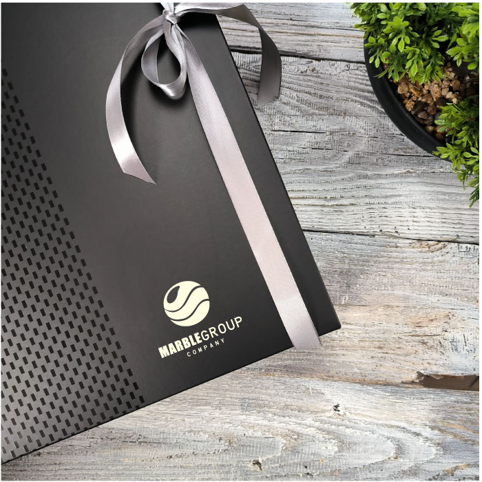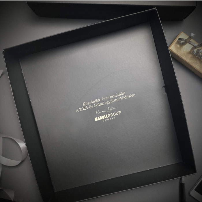 A doboz külsejére felül pedig a céged logóját égetjük rá Arany fóliával.